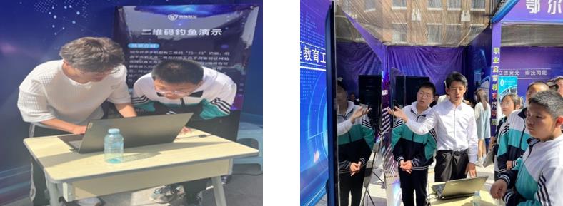 中国联通内蒙古分公司副总经理韩敏一行,各职业院校师生,康巴什中小学生分别参观了系部网络安全科普活动,并与我系师生进行了广泛的互动交流。