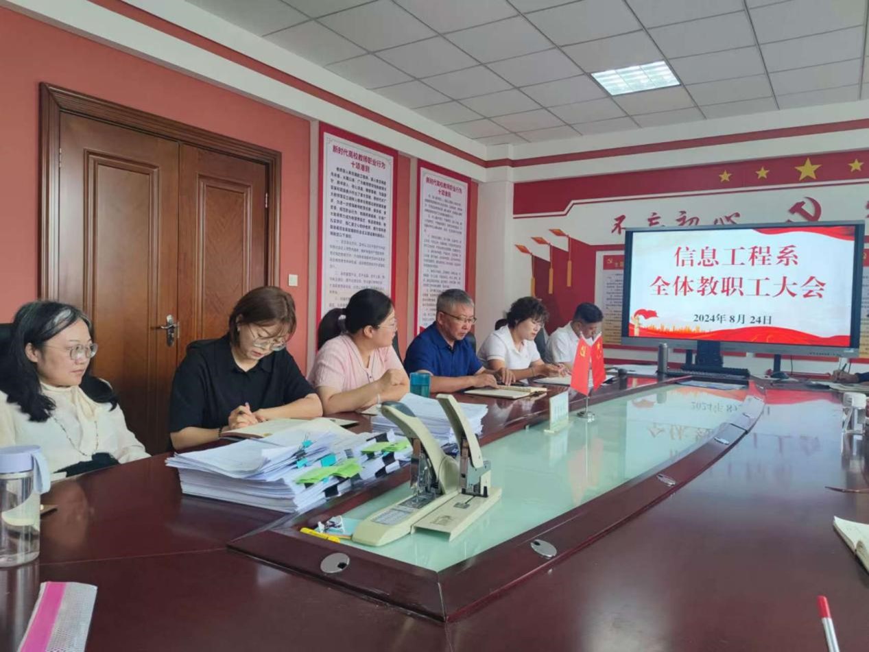 8月24日上午,信息工程系在教研楼331会议室召开了新学期工作部署会,会议由信息工程系主任武小芳同志主持,全体教职工参加本次会议。