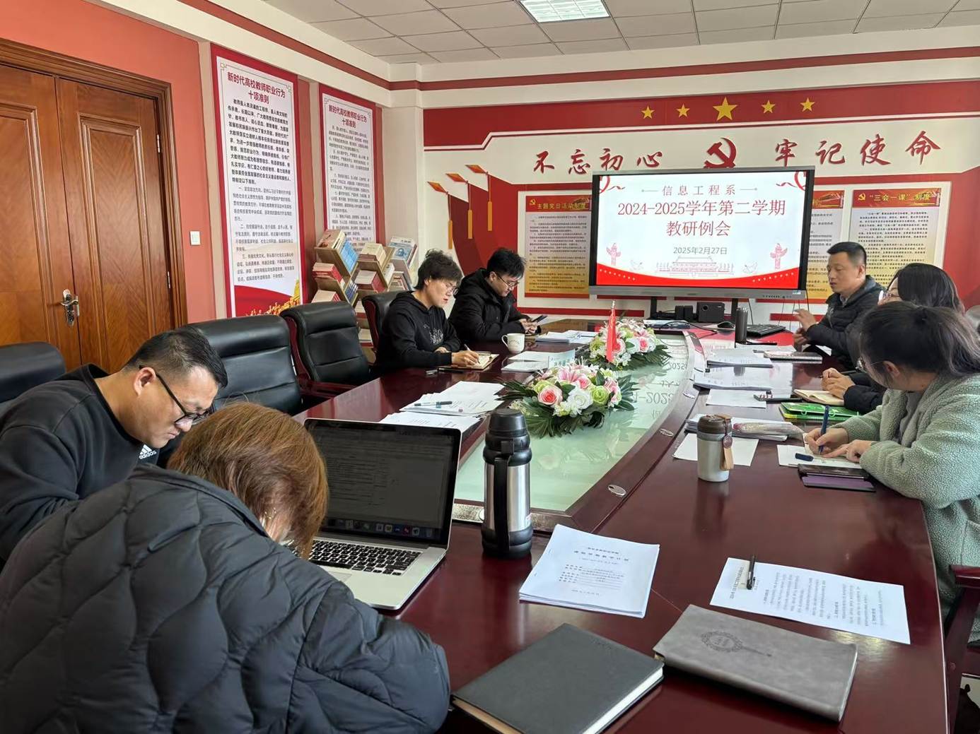 2025年2月27日上午,信息工程系教研中心在331会议室召开了本学期首次教研例会。会议由信息工程系主任武小芳主持,教研中心全体教师及各专业负责人参会,围绕新学期教学改革、专业建设重点任务及教研创新路径展开深入研讨,旨在明确目标、凝聚共识,为新学期工作奠定坚实基础。
