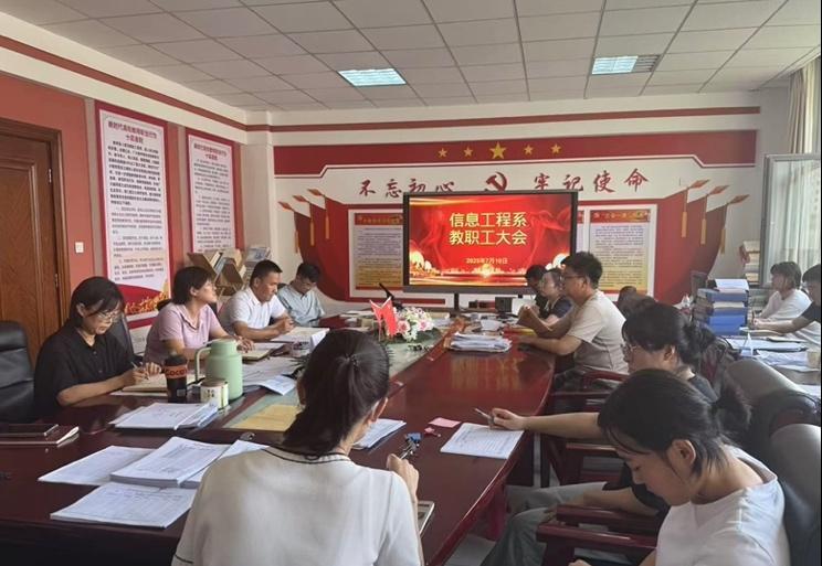 7 月 10 日下午,信息工程系召开 2024-2025 学年第二学期期末全体教职工大会。会议由系主任武 小芳 主持,全体教职工出席。