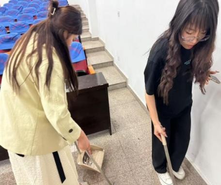 此次“清扫行动”不仅是简单的环境整治,更是一场沉浸式劳动教育和团队凝聚力的双重锻炼。同学们在挥汗擦拭中触摸劳动的重量,于协作攻坚中感受集体的力量。这场劳动实践展现了志愿者良好的专业素养和无私奉献的精神风貌,成为文明素养的生动课堂。
