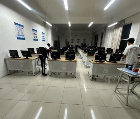 行动中,志愿者们秉持高效协作理念,迅速组建清洁小组,明确划分清扫区域与职责。他们手持扫帚、抹布等清洁工具,对教室窗户、黑板、讲桌及地面等区域展开“地毯式”清扫。在机房清扫维护中,计算机运维社的志愿者化身 “设备诊疗师”,运用专业知识对计算机设备进行细致的检查与性能维护,确保每一台计算机都能正常运行,每一处角落都干净整洁。