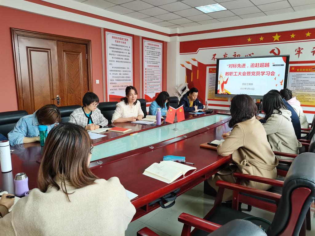 2022年3月25日上午,信息工程系在教研楼331举行了"对标先进,追赶超越"教职工大会暨党员学习会。会议由信息工程系党总支书记张海琴主持,信息工程系全体无课教师参加。