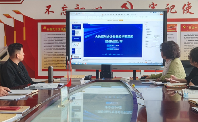 随后,教务科副科长贾小平分享了信息技术课程建设的最新进展。他详细介绍了课程体系的优化、教学内容的更新以及实践教学的创新举措。接着,大数据与会计专业负责人李梅老师分享了大数据与会计专业资源库建设的经验和成果。她指出,通过整合优质教学资源、建立共享平台,有效提升了专业教学质量和人才培养水平。
