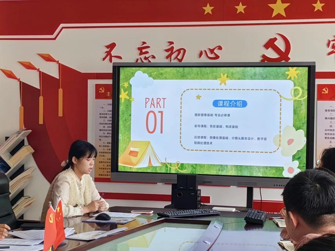 本次交流会上参会教师们积极分享各自在教学实践中积累的宝贵经验。首先由张楚晗老师就“摄影摄像基础”这一专业必修课从前导课程、后续课程分别进行了教学资源建设分享,并对教学目标、课程标准、PPT等内容分别进行了介绍,其中张老师结合课程内容制作的精美PPT赢得了一众好评。不仅如此,张老师在课程制作过程中积极融入互联网软件进行教学设计,有利于激发学生的主观能动性。