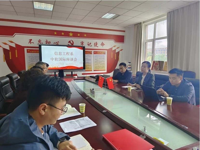 为推动信息工程系各专业实现高质量发展,我系于9月5日下午组织了信息工程系与中软集团座谈会,本次会议邀请了中软国际教育集团北京大区总经理荣蓉、副总经理胡锋、内蒙古区域负责人黄鹏飞,以及我系书记和各专业负责人参加。会议由系主任武小芳主持,并邀请学院党委委员副院长杭刚参加座谈。