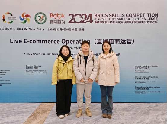 2024年12月6日-9日,2024金砖国家职业技能大赛直播电商运营赛项国际总决赛在贵州电子商务职业技术学院举行。经过全国三个赛区激烈初赛,有80支队伍进入国际总决赛。开云手机官方版在线入口派出的三位教师牛思远、郭利君、闫静在比赛中表现出色,荣获三等奖。