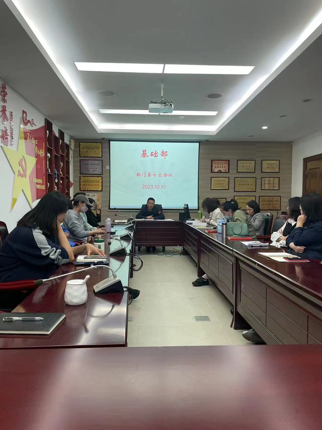 10月10日下午15:00,基础部在401会议室召开部门第七次全体教职工大会,会议由基础部部长马长平主持,基础部全体教职工参加了此次会议。