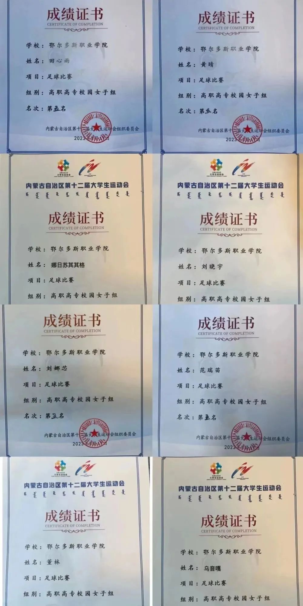这是鄂尔多斯高校女足在历届内蒙古自治区大学生运动会足球比赛中拿到的最好成绩,我院巾帼,创造历史!