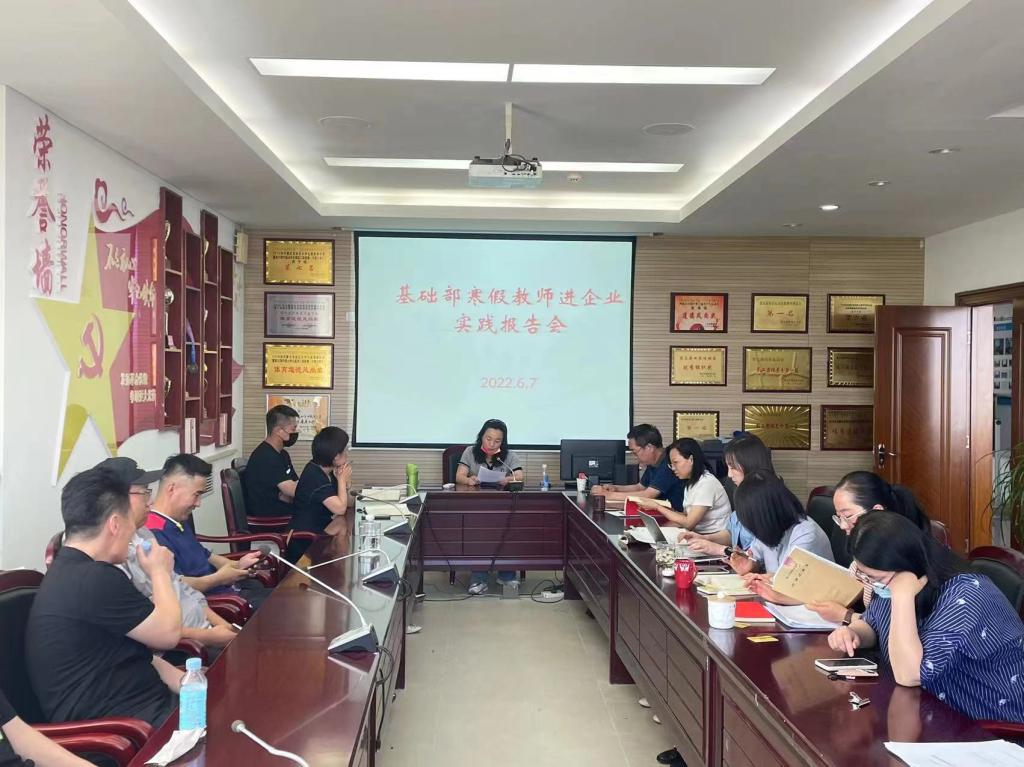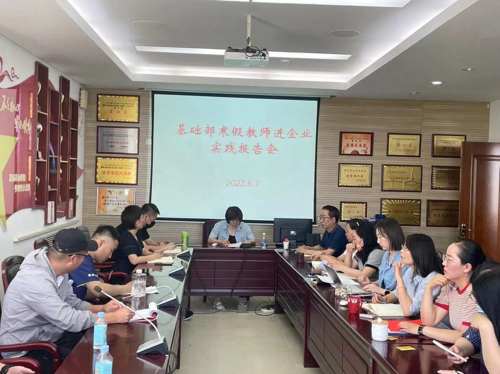为深入贯彻落实学院人才强校战略,加强专业梯队建设,提高教师的教学、科研能力,建设一支高素质的教师队伍。2022年6月7日下午,基础部组织全体教师听取了基础部三名教师为期一个月赴企事业单位寒假实践锻炼成果汇报,并且进行了交流。基础部负责人胡喜和主持了会议。党委教师工作部张春梅老师参加了此次会议。