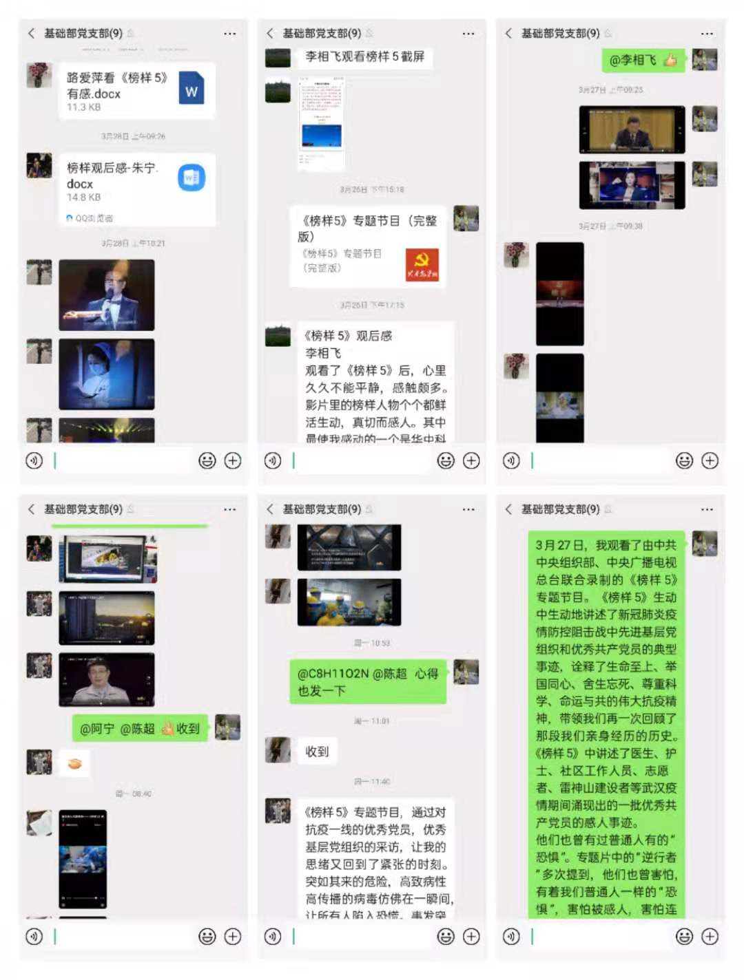 为创新党日活动方式,结合部门教师实际,基础部支部于3月26日—30日以线上党日活动的形式,组织支部全体党员收看《榜样5》专题片。