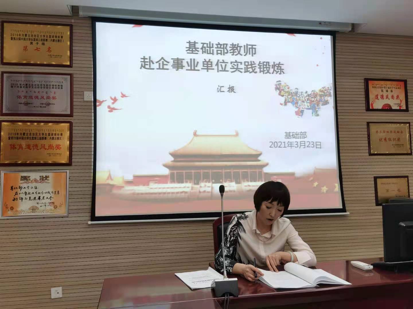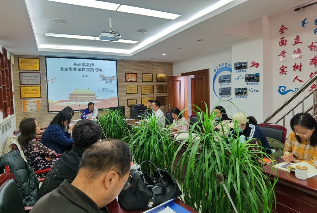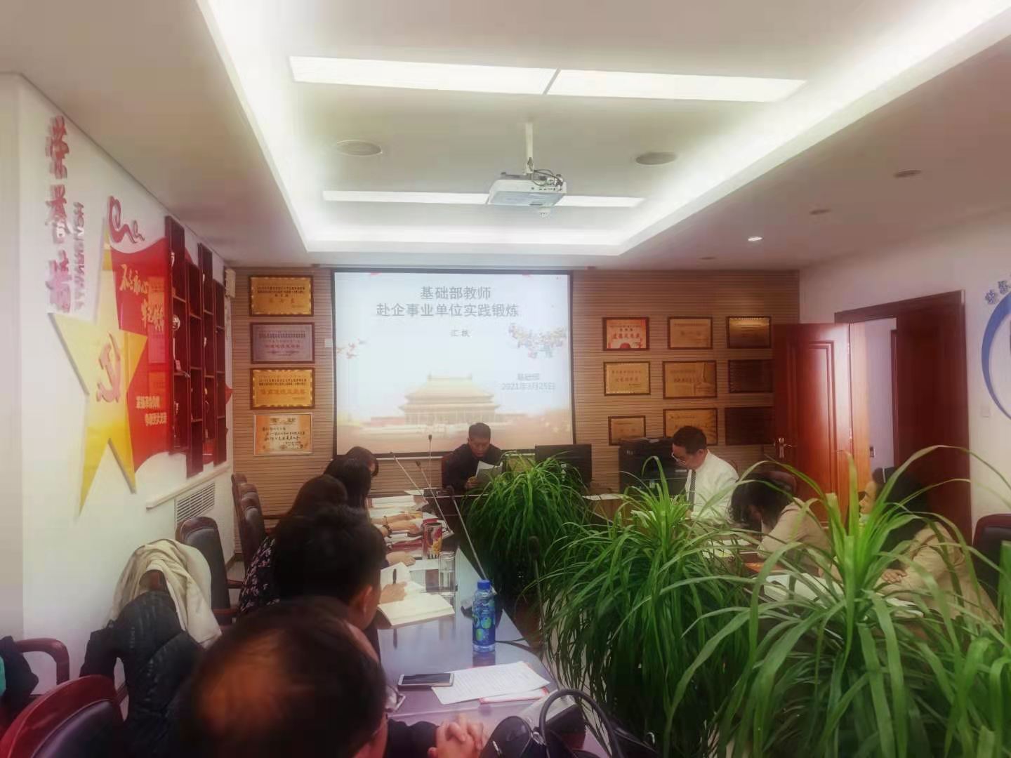 最后基础部负责人胡喜和做了总结发言,强调了教师赴企事业实践锻炼重要意义,并且积极鼓励倡导其他教师要利用假期的时间赴企事业单位进行锻炼学习,从而提高自身的综合素质,为学院的发展贡献自己的一份力量。