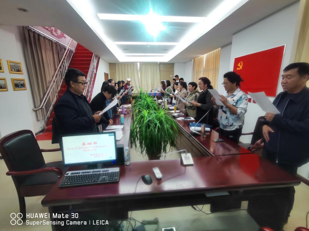 为进一步弘扬爱国主义精神,铸守中华民族共同体意识,弘扬红色文化,增强党员爱国、爱党、爱校的责任意识,丰富支部教育活动形式,2020年10月20日,基础部支部全体党员及部门教师组织开展“唱红歌 诵情怀”主题党日活动。