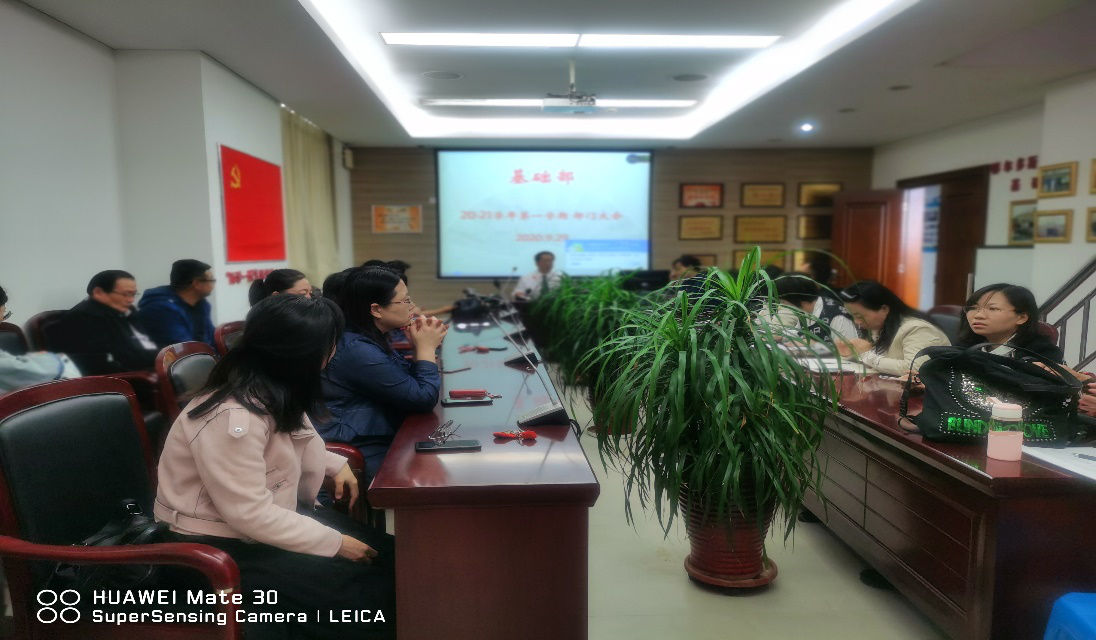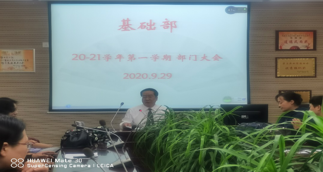 为了全面推进新学期各项工作,2020年9月29日,基础部在401会议室召开部门大会,会议由基础部副主任胡喜和主持,基础部全体教职工参加了会议。