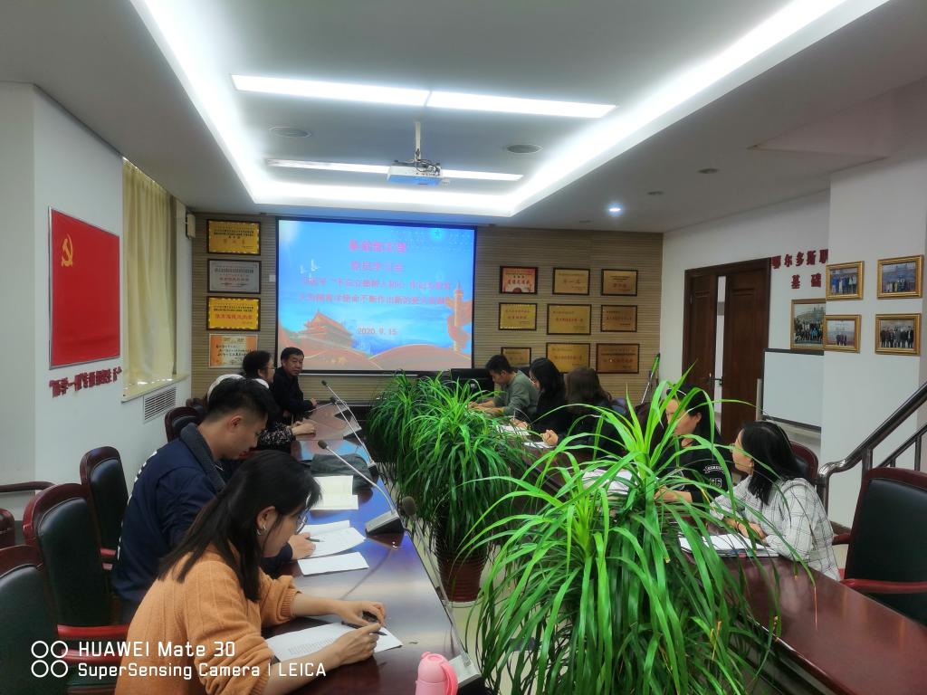 2020年9月15日基础部支部组织党员专题学习习近平主席教师节前夕讲话“不忘立德树人初心、牢记为党育人、为国育才使命,不断作出新的更大贡献”讲话精神。会议由支部书记白雪明主持。