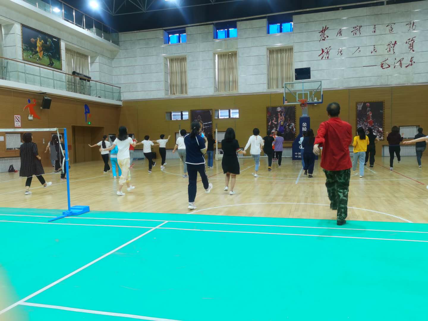 6月4日下午16:00在学院文体中心,基础部支部党员参加“每天锻炼一小时,健康工作五十年,幸福生活一辈子”为主题的健身操党日活动,基础部党支部除有课党员外全体党员参加了此次健身操活动。