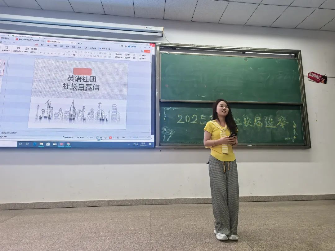 为了保证社团工作的连续性和发展性,选拔出优秀的同学带领社团迈向新的征程,英语社团于5月18日顺利完成了本次换届竞选活动。竞选过程中,同学们热情高涨,积极参与。他们站在讲台上,自信满满地阐述自己对社团工作的理解、未来的规划和发展设想。