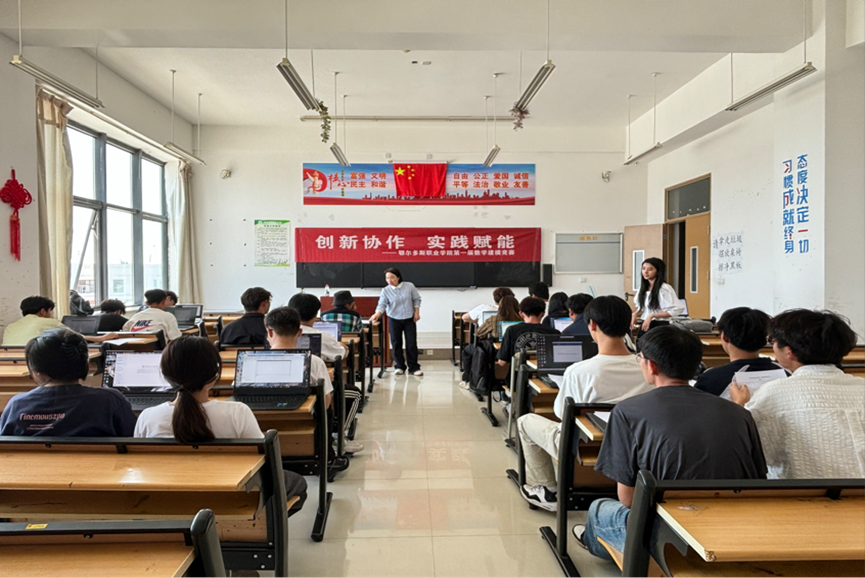 为深入贯彻《国家职业教育改革实施方案》,践行“产教融合、德技并修”的教育理念,培养学生的创新意识,增强团队协作能力,6月10日下午,数学教研室组织举办全院首届数学建模竞赛。本次竞赛以“创新协作 实践赋能”为主题,围绕区域资源优化、交通拥堵优化、生态环境保护等实际问题设置赛题,旨在培养学生运用数学方法解决现实问题的能力。