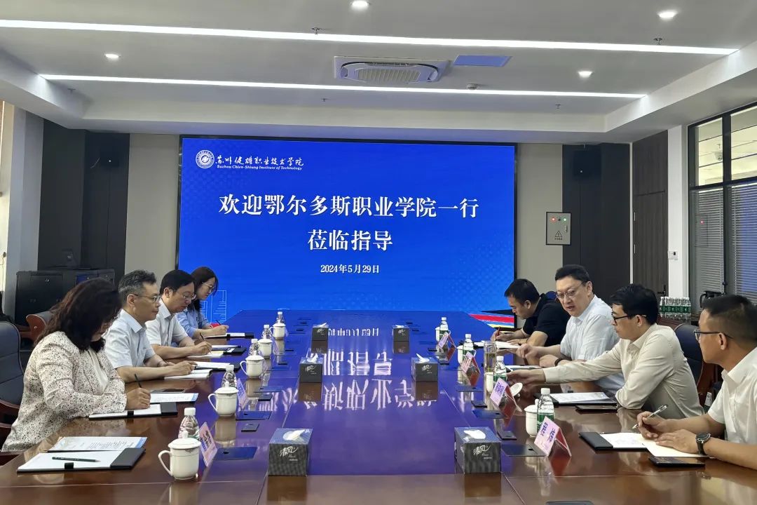 5月29日上午,学院党委副书记、院长宋希文,党委委员、副院长任光飞一行赴苏州健雄职业技术学院考察学习,双方就“双元制”职业教育模式、中德职业教育产教融合联盟和实习实训条件以及双方战略合作等方面进行了深入交流。苏州健雄职业技术学院党委书记苏霄飞,党委委员、副院长周晓刚及相关人员参加座谈。