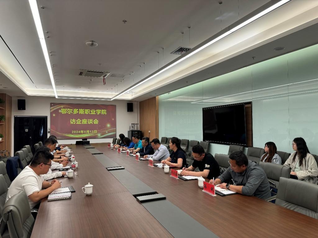 参观结束后,宋希文一行与蒙苏工业园区管委会、鄂尔多斯隆基光伏科技有限公司代表举行了座谈会。会上,蒙苏工业园区管委会副主任杨勇就园区建设情况及区内企业入驻及建设情况进行了介绍。宋希文介绍了学院专业建设、人才培养、教学科研等情况。双方就人才岗位需求、产学研合作等方面进行了交流,并希望今后继续加强联系,不断创新合作内容和方式,共建高水平、深层次、长期的合作共建机制,进一步推动产教融合,提升服务区域经济社会发展能力。