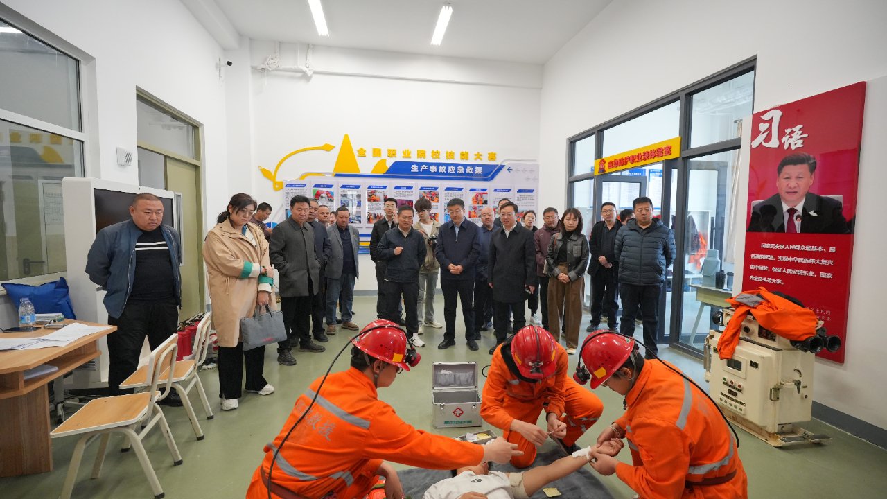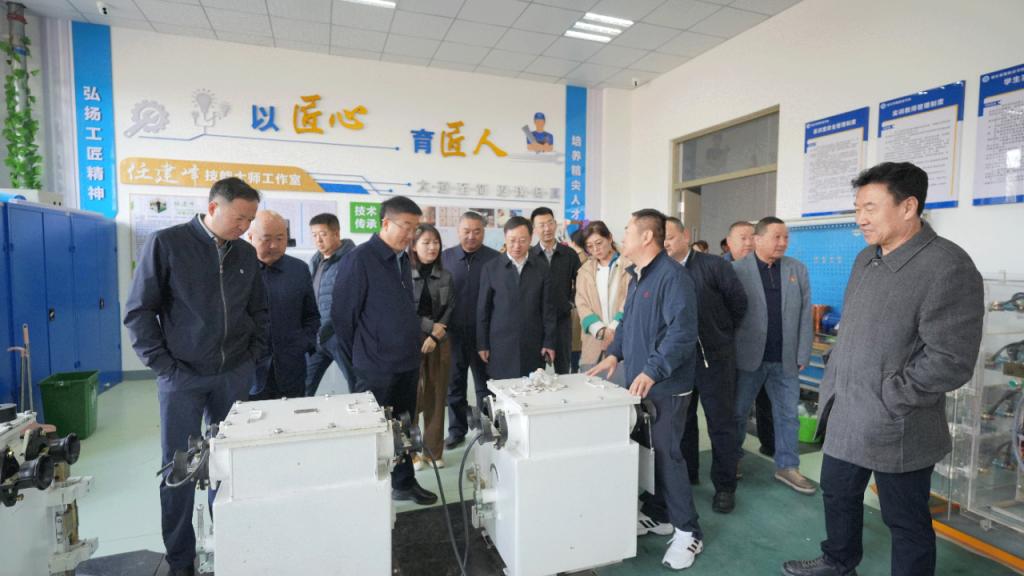 会前,折占平一行在任光飞的陪同下共同参观了智家工程实训基地、生产事故应急救援实训室、机电实训室以及化工实验实训中心等实训场地。