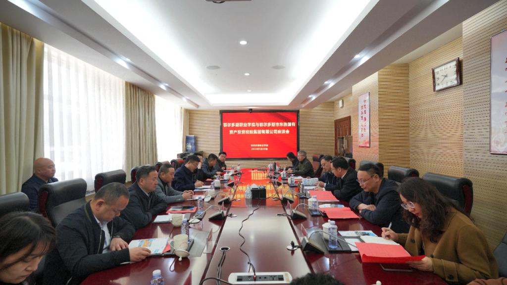 近日,东胜国有资产投资控股集团党总支书记、董事长折占平一行到我院就校企合作相关事宜开展座谈交流。学院党委书记马建峰,学院党委委员、副院长任光飞,党委委员、宣传部部长兼资源工程系党总支书记付瑞出席会议,招生就业处、培训中心、信息工程系、人文管理系、机电工程系相关负责人参加会议。