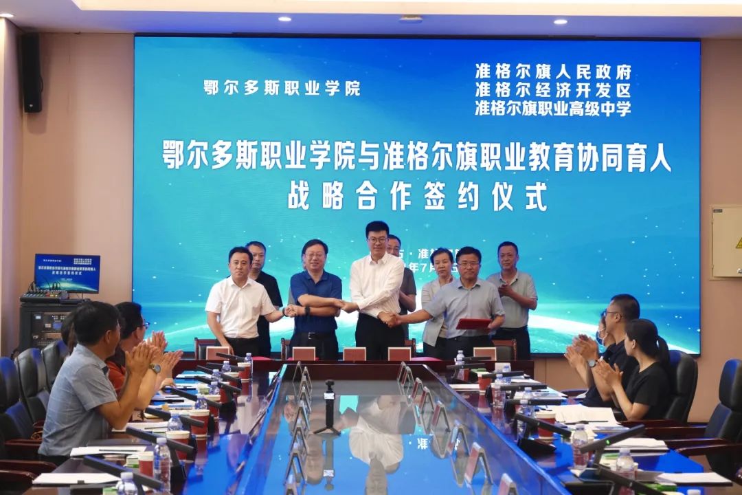 座谈会上,学院与准格尔旗人民政府、准格尔经济开发区、准格尔旗职业高级中学签订开云手机官方版在线入口与准格尔旗职业教育协同育人战略合作协议。准格尔旗人民政府副旗长张亚男,准格尔经济开发区管委会副主任杜国华,旗教体局副局长安晓红以及人社局、工科局、能源局、开发区人才科技局、准旗职业高级中学主要负责人,各驻地企业代表等出席座谈会。