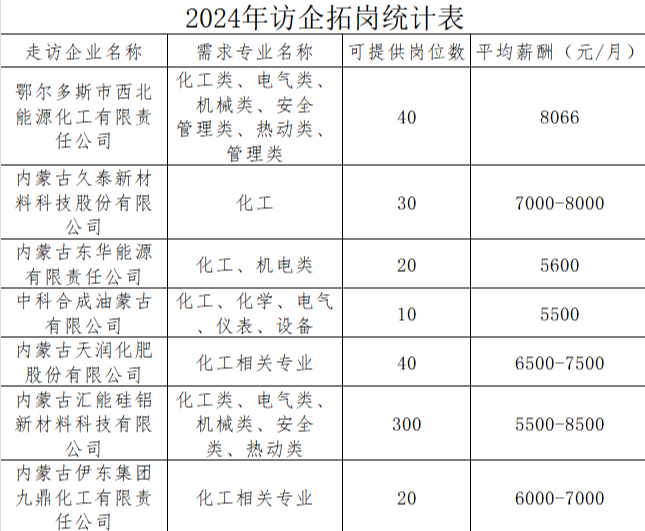 “书记校长访企拓岗促就业专项行动”准格尔旗之行各企业反馈用工需求岗位及人数