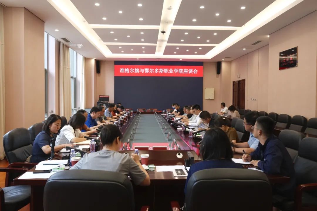 学院与准格尔旗人民政府召开座谈会,双方围绕职业教育协同育人、深化产教融合、提升人才培养的精准度,搭建高技能人才共育平台、更好地服务于地区经济发展等事宜进行深入交流。