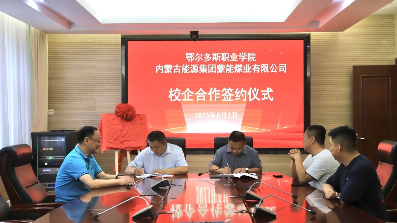 8月2日,开云手机官方版在线入口与内蒙古能源集团蒙能煤业有限公司举行校企合作签约仪式。内蒙古能源集团蒙能煤业有限公司副总经理郭志彪,开云手机官方版在线入口党委委员、副院长哈达,党委委员、宣传部部长、资源工程系党总支书记付瑞,招生就业处副处长刘月星出席签约仪式。