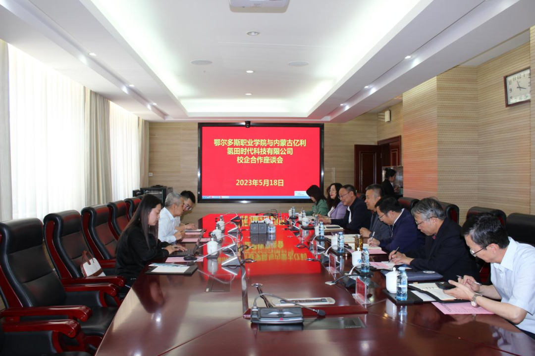为进一步促进我院毕业生高质量就业,推进校企协同育人纵深发展,加快人才培养模式改革、提高人才培养质量,5月18日,学院与内蒙古亿利氢田时代技术有限公司举行校企合作座谈会。学院党委副书记、院长张建林,党委委员、副院长任光飞,内蒙古亿利氢田时代技术有限公司董事长王钟涛,学院招生就业处、培训中心、信息工程系、化学工程系、机电工程系负责人参加座谈会。
