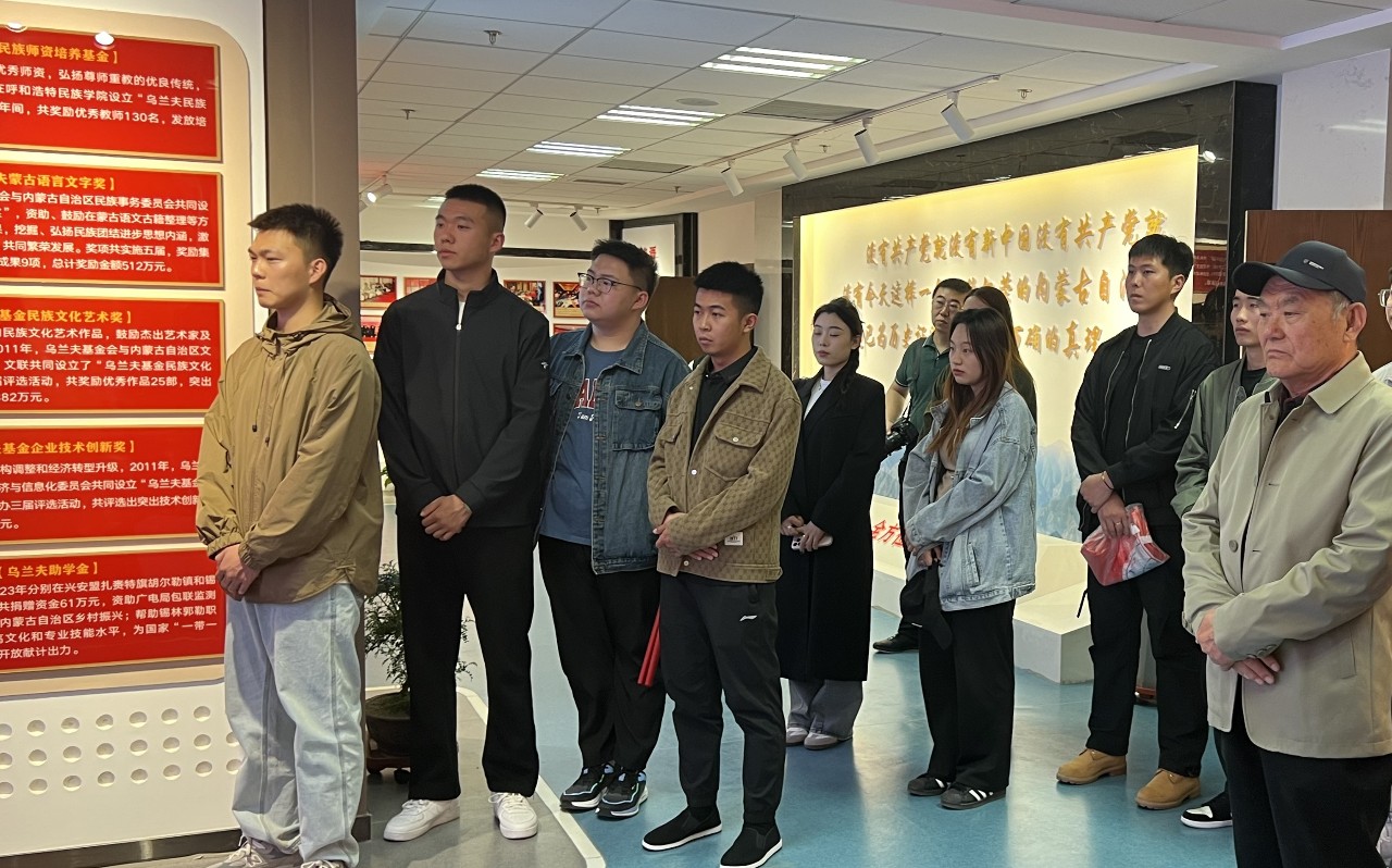 上午,研学队伍来到第一站——乌兰夫基金会。乌兰夫基金会第五届理事云晓明、办公室主任岳红燕对我院师生一行的到来表示热烈的欢迎。首先,双方围绕我院受助学生学业生活情况及感想展开座谈交流,并组织我院师生共同观看《乌兰夫奖学金》项目纪录片,了解其在激发优秀大学生学习热情,培养学生奋发向上精神,助力学生学业进步,传承红色基因,推动全区教育事业发展等方面所发挥的积极作用。接着,我院师生参观了乌兰夫基金会展陈室,云晓明、岳红燕分《酌水知源》《扬帆起航》《强根铸魂》三个单元对乌兰夫基金会致力于民族团结、维护祖国统一,助力内蒙古的繁荣和进步的发展历程进行详细讲解。