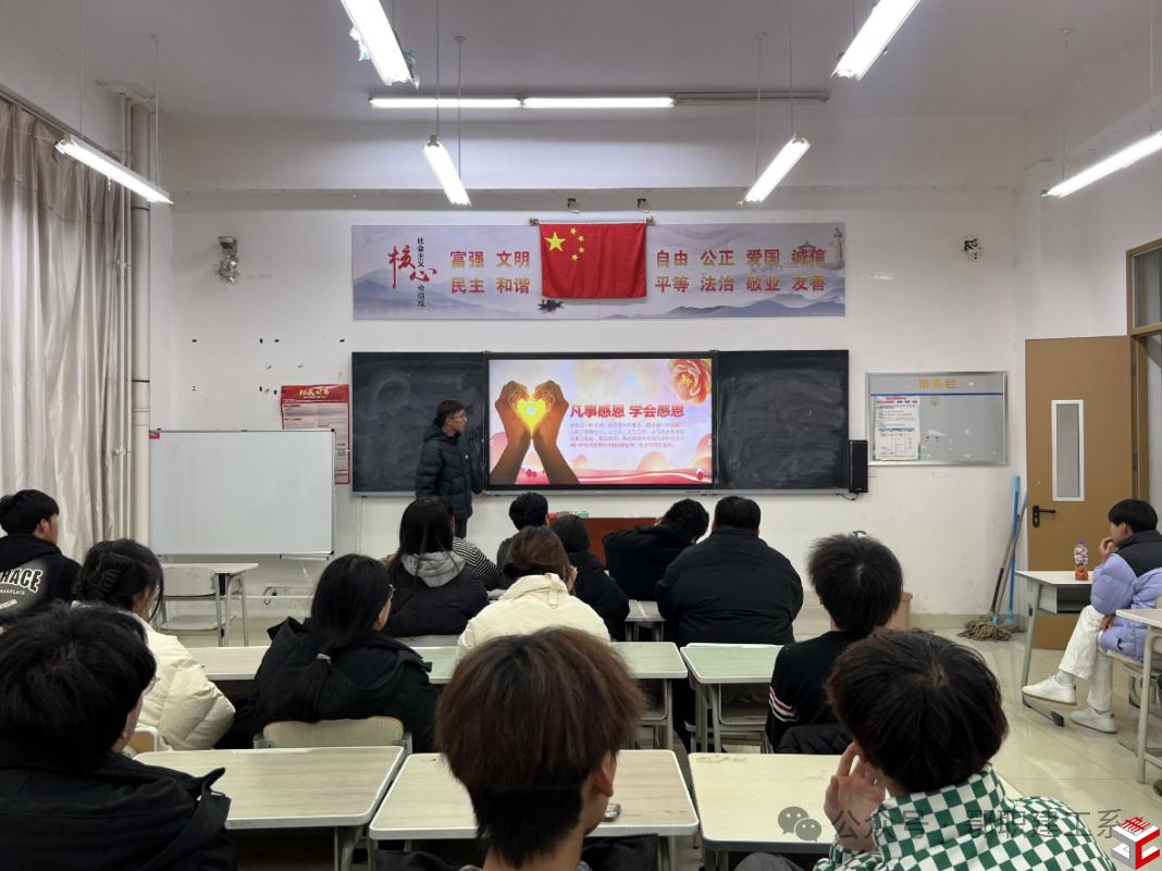 为弘扬中华传统美德,促进校园精神文明建设。2024年12月9日,建工系团总支开展“感恩于心、践责于行”主题团课。