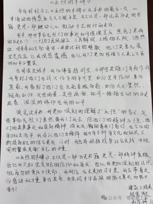 为进一步弘扬雷锋精神,加强精神文明建设,激励学生以实际行动践行雷锋精神,共同营造向上向善的校园氛围。建筑工程系于3月13日在图书馆再开展“共读一本好书”读书分享会。本次读书分享会,学生们共同阅读《永恒的丰碑》。