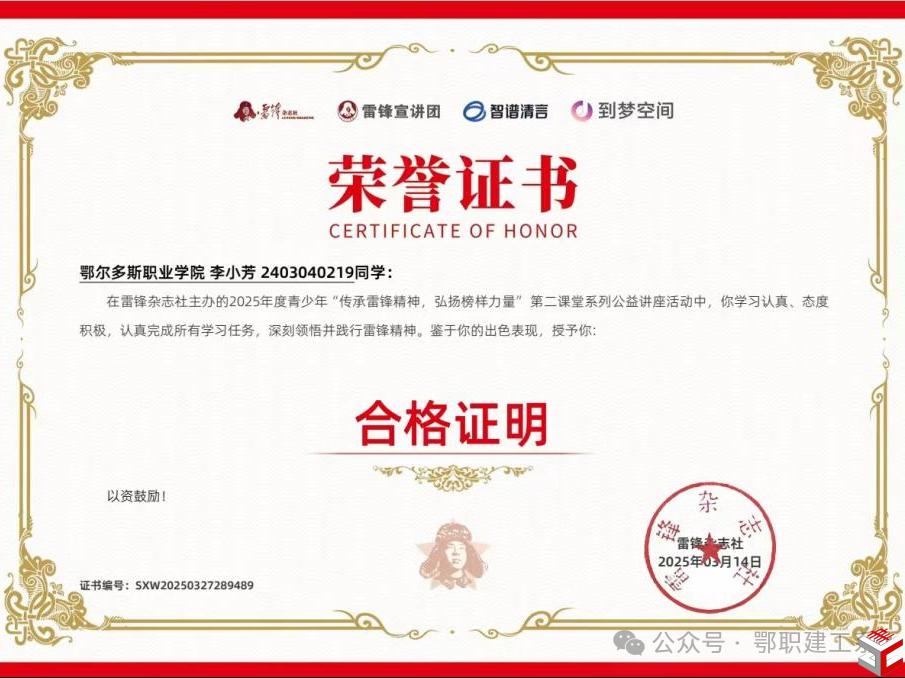 为深入学习宣传贯彻党的二十大和二十届二中、三中全会精神,贯彻落实习近平总书记对深入开展学雷锋活动的重要指示精神,3月13-14日19:00,建筑工程系团总支积极组织全系学生观看2025年“传承雷锋精神,弘扬榜样力量”第二课堂线上公益讲座。
