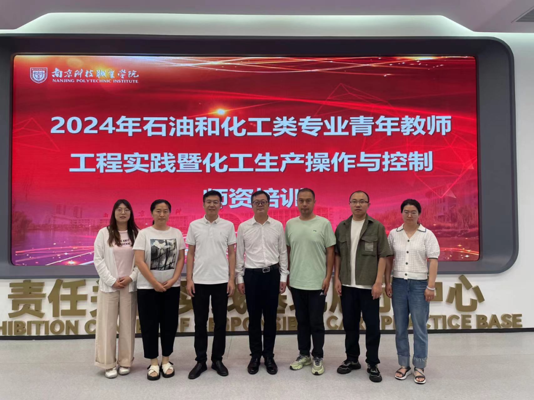 为进一步加强师资队伍建设,提升师资教学能力,推动我系专业群建设,7月8日至7月14日,化学工程系工艺教研室段丽丽、王鑫、郝延顺、辛雅清、闫旭娟五位教师赴南京市参加2024年石油化工类专业青年教师工程实践暨化工生产操作与控制师资培训。