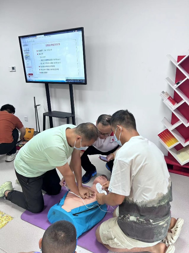 保护学生安全健康学习成长是每位教师应遵循的准则,提升教师应急救护能力刻不容缓。南京红十字会两位培训师认真讲解了心肺复苏、人工呼吸、AED的使用和气道梗阻救护方面的相关知识,老师们实践了身体不同部位受伤的应急包扎手法等,教师们积极性高,获益匪浅。