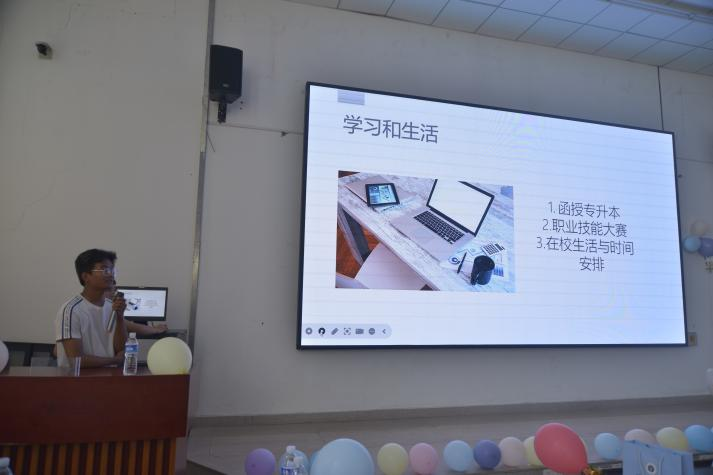 分享会开始,优秀毕业生代表刘向龙、白旭峰和杨心园分别从岗位实习心得、专升本备考、函授升本等不同发展方面为学弟学妹分享经验心得并提出了建议,帮助大家明确未来职业发展方向,增强信心与决心,充分发挥了朋辈互助、示范引领作用。