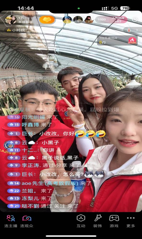 为进一步拓宽农产品的销售渠道,同时向广大网友展示乡村的优质农产品,队员们采用线上直播的方式,详细介绍水果的特点、种植过程和营养价值。通过直播的广泛传播,让更多消费者了解和购买乡村特色农产品,直接促进了农产品的销售,增加了农民的收入。公益直播进乡村,爱心助农促发展对于推动乡村经济发展、实现乡村振兴战略目标具有重要意义。