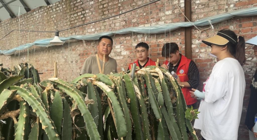 活动伊始,全体队员抵达火龙果种植基地,专业技术人员详细地讲解了从选地、育苗、定植,到管理、采收的整个火龙果种植过程。不仅让全体队员对火龙果的种植技术有了更为深入的了解,还让他们感受到了生命成长的神奇过程。通过亲身体验,队员们对乡村振兴中农业发展的成果和农民的辛勤付出有了更为深刻的体会。