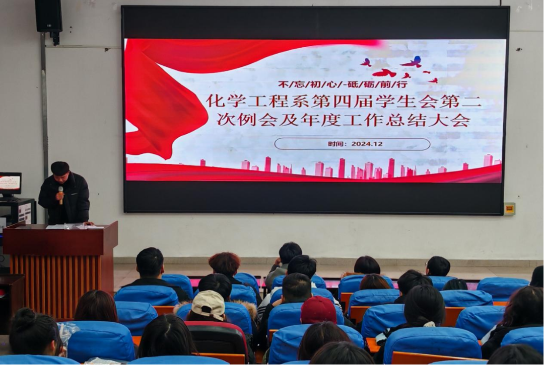 为总结本学期团学工作成果,更好的明确未来的工作方向,全体团学干部参加了会议,12月26日晚,化学工程系团总支在教学楼阶梯教室223召开了第四届学生会第二次例会及年度工作总结大会。学工与综合管理科科长张乾、团总支书记高境泽、辅导员张晓东、全体团学干部参加了会议。