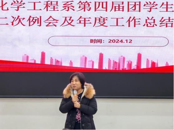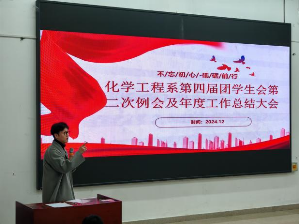 随后,团总支书记高境泽老师对学生会成员这学期取得的成绩给予充分肯定,并对他们的辛勤付出表达感谢。他高度评价了团学干部在组织协调、活动策划以及服务师生中的优秀表现,称赞大家展现出了责任与担当精神。高老师寄语全体成员,希望大家在新的一年继续保持积极向上的精神风貌,不断提升自身的综合素质和工作效能,在实践中锤炼能力、开拓创新,为化学工程系的发展贡献更多智慧与力量。