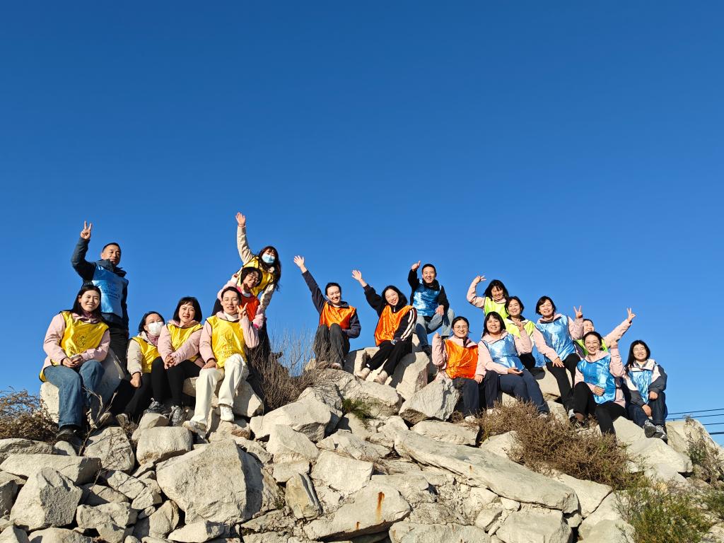 紧接着,是“翻越雪山”的挑战。尽管只是模拟,但陡峭的山坡和艰难的攀爬依然让大家感受到了当年红军战士所面临的巨大困难。老师们相互扶持,相互鼓励,一步一步地向着山顶前进,展现出了守望相助、勇往直前的精神风貌。