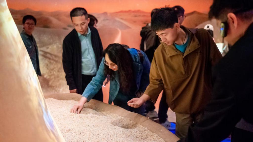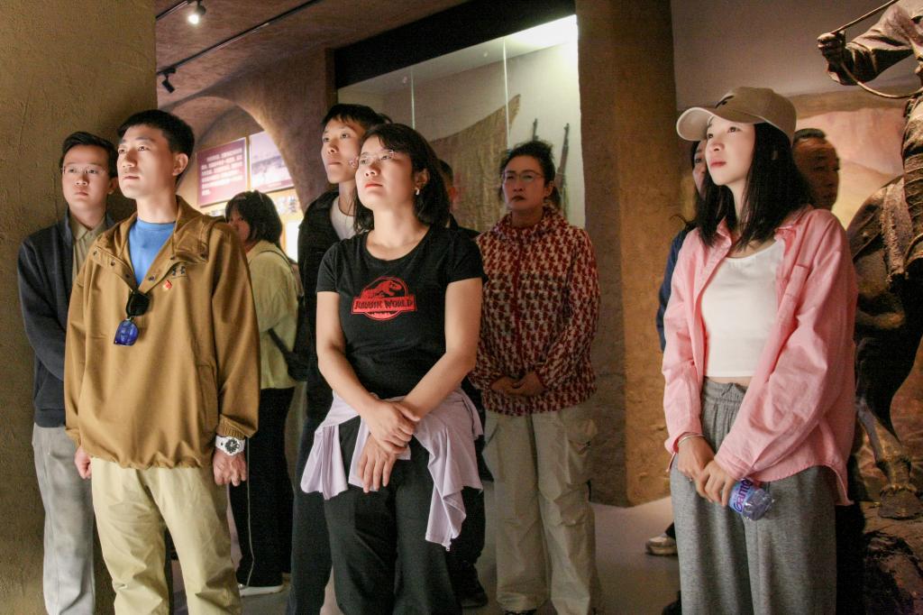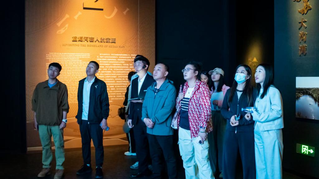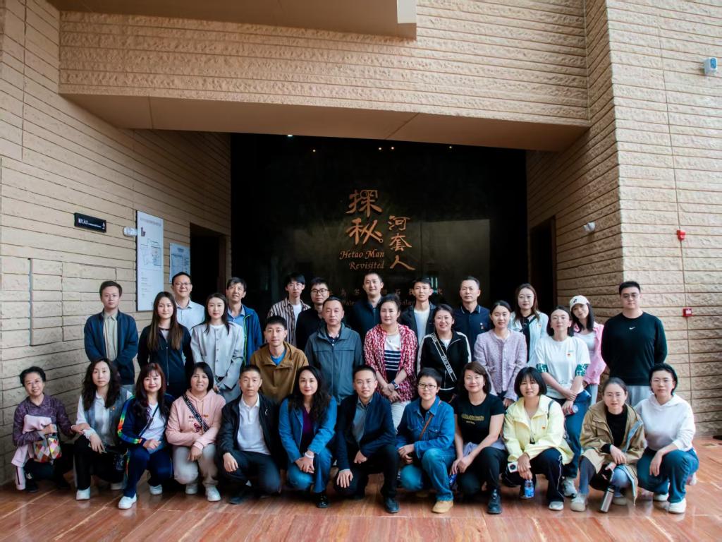 活动首日下午,党员教师们走进萨拉乌苏遗址博物馆。这座坐落于蒙陕交界的文明地标,以3.5万年前“河套人”头骨化石、2000余件打造石器及动物骨骼,揭开了旧石器时代晚期人类在黄河“几字湾”共同生活的史诗。这些器物证明,早在文字诞生之前,黄河流域的先民就通过迁徙与交流,形成了最早的“文化共同体”。讲解员指着一个地层剖面陈列物说:“这七万年的文化堆积层,恰似中华民族的文明基因图谱,藏着各民族根脉相连的文化DNA”。