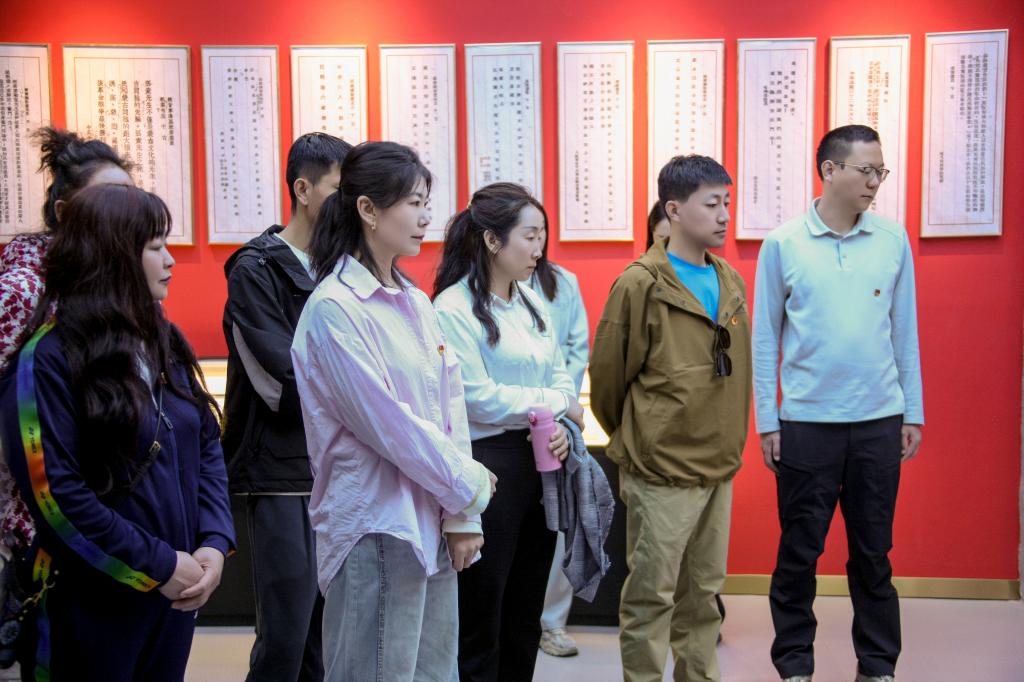 次日清晨,教师们整齐列队于星火广场,面对鲜红的党旗重温入党誓词。“我志愿加入中国共产党……”铿锵有力的誓言在广场上空回荡,字字千钧,唤醒入党初心。随后,党员们依次参观乌审旗革命故事讲习馆、生态文明展馆、党史教育馆及旗委办公旧址。泛黄的文献资料、斑驳的革命遗物、珍贵的历史影像,串联起各族人民在乌审大地上不屈不挠的抗争史与生态文明建设的奋斗历程。大家纷纷表示,要从革命先辈的奋斗历程中汲取精神力量,时刻以党员标准严格要求自己,用实际行动践行入党誓言,永葆共产党员的政治本色。