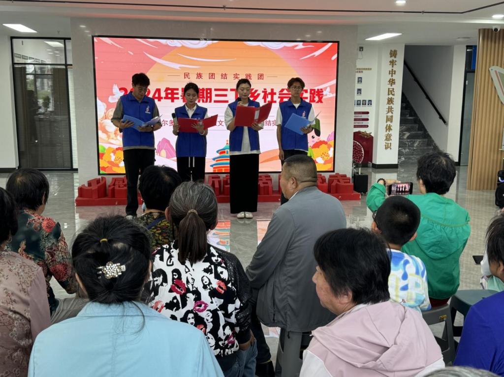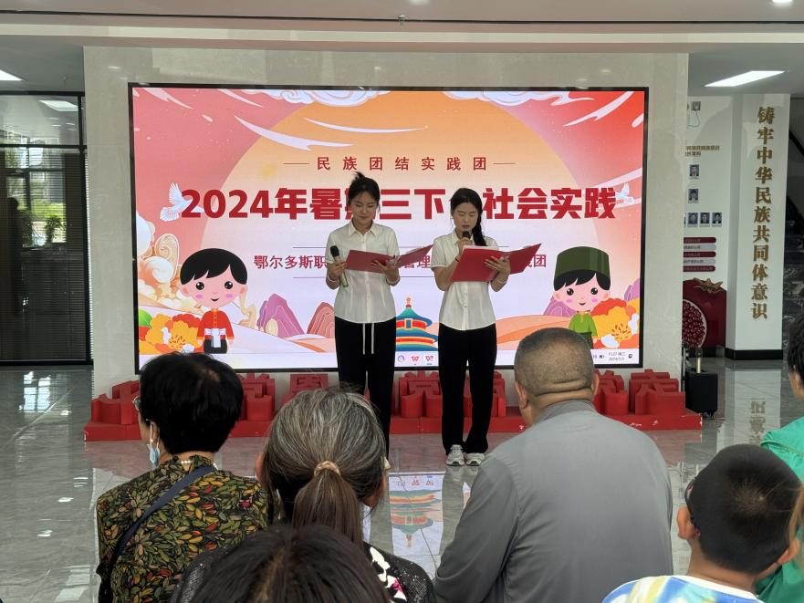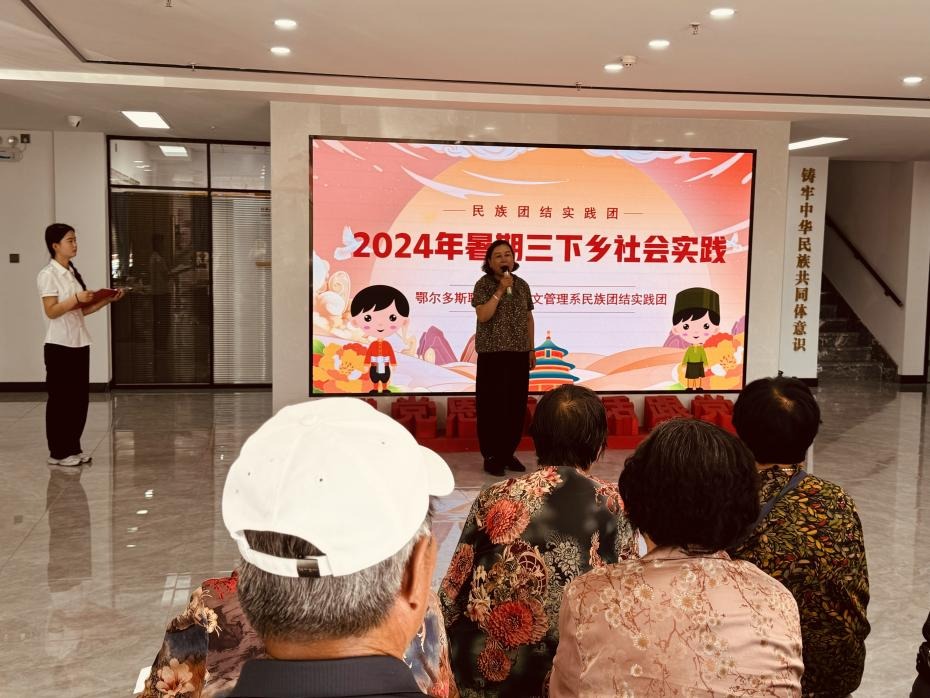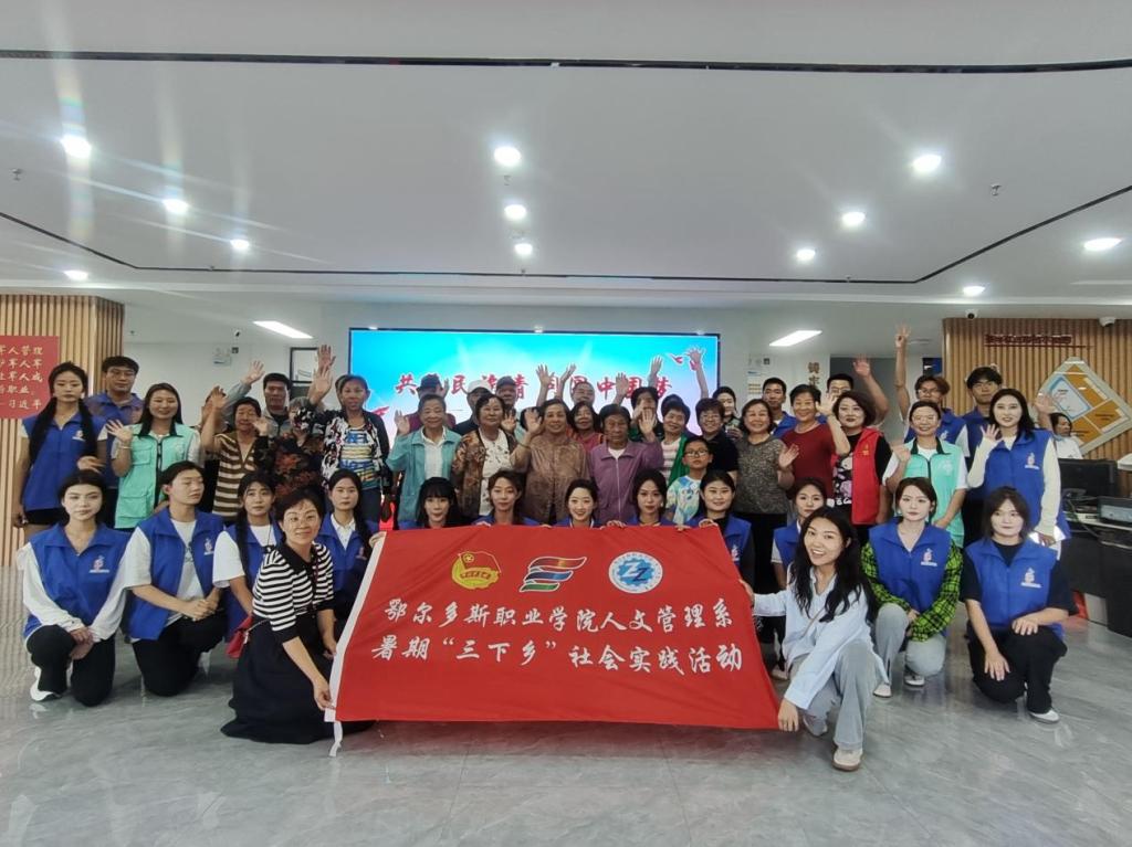 为深入学习贯彻落实习近平总书记关于加强和改进民族工作的重要思想,积极结合专业特色助力民族团结,做民族团结的促进者、实践者、守护者,2024年暑期,人文管理系“民族团结实践团”赴东胜区诃额伦街道开展“共筑民族情•同圆中国梦”暑期社会实践活动。