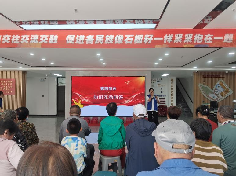 现场气氛热烈,居民们积极参与,竞相答题,通过寓教于乐的方式进一步理解了民族团结的重要性。
