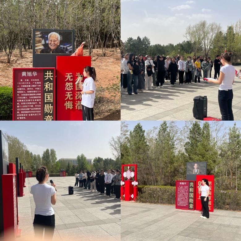 抵达中心公园后,同学们来到小广场,一场别开生面的志愿者讲解活动正式拉开帷幕。活动特别邀请了人文系同心北疆志愿服务队同学为大家深入解读共和国勋章背后的感人故事。