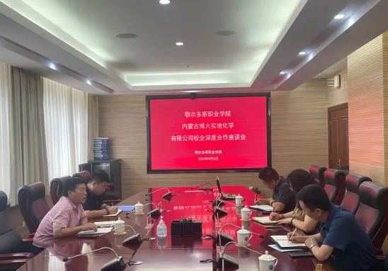 座谈会上,康瑞介绍了内蒙古博大实地化学有限公司的发展历程和运行情况,马桂香对学院化工专业的课程设置、单招统招考试和企业需求进行了详细解答,苏忠义针对校企合作人社局政策、校企合作协议签订流程等事项进行了详细说明,双方就公司员工开展化工专业理论技能培训相关事宜进行了深入交流。