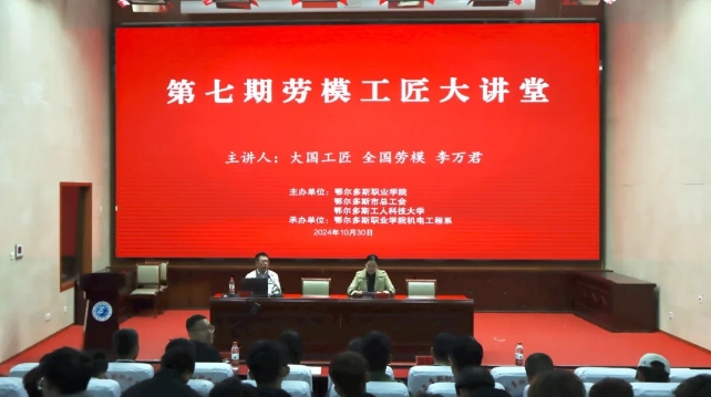 为深入学习贯彻党的二十届三中全会精神,大力弘扬劳模精神、劳动精神、工匠精神,机电工程系联合工会、培训中心共同开展“匠心铸就品质,创新引领未来—— 新质生产力赋能高质量发展专题培训暨劳模工匠进校园活动”。活动邀请全国劳模、大国工匠李万君为师生作题为“赓续劳模精神,强国复兴有我”专题报告。